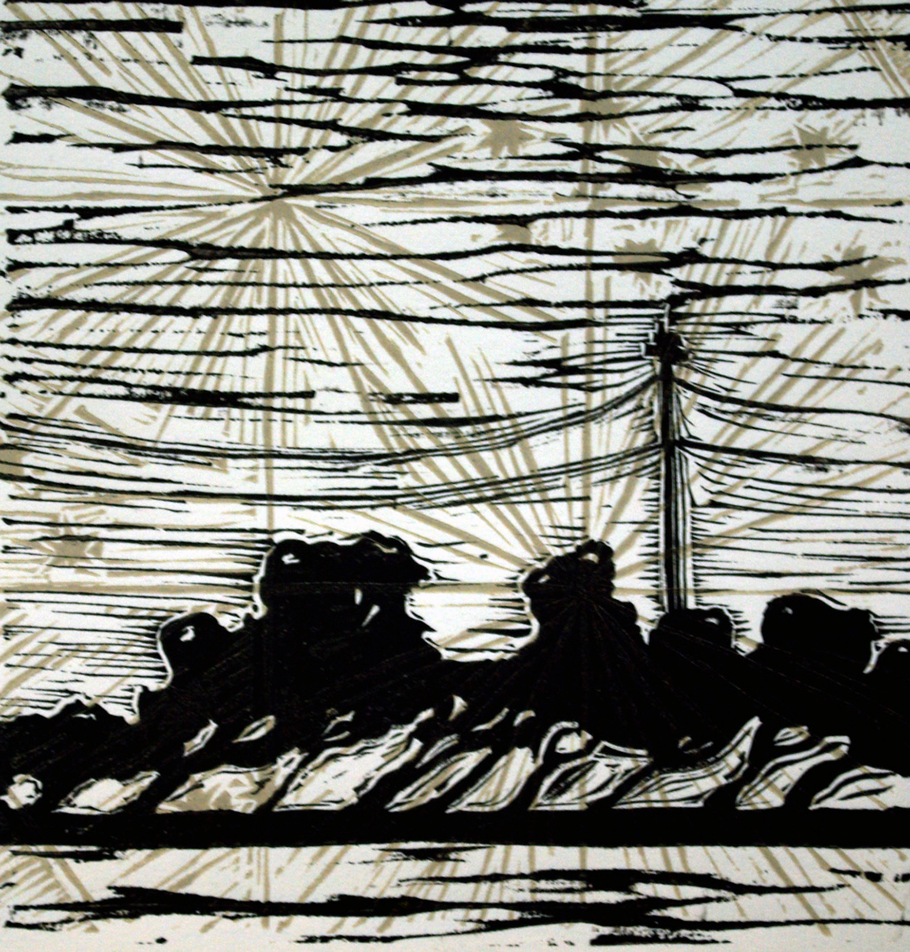 Point Lonnie to New York, 2013, Lino-cut 15 cm x 15 cm.